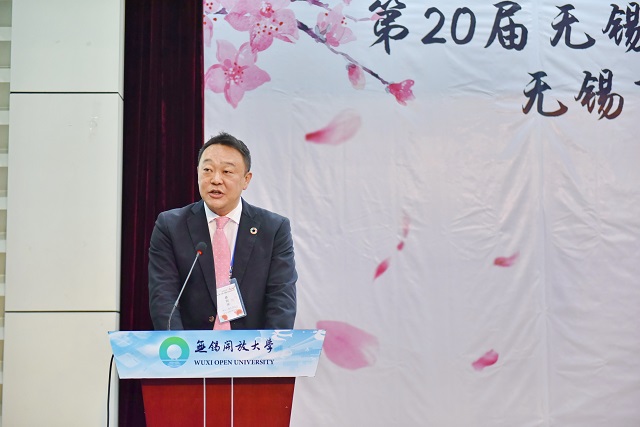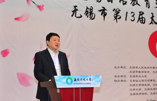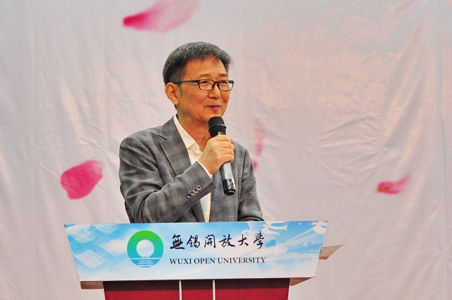 在開幕式上,首先,無錫開放大學(xué)校長張旭致歡迎詞,周以德老師翻譯。