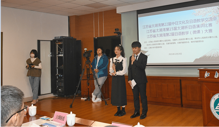 經(jīng)過主辦方、承辦方、協(xié)辦方及參賽方幾個(gè)月的忙碌,江蘇省太湖灣第22屆中日文化及日語教學(xué)交流會、第2屆日語教學(xué)(微課)大賽、第15屆太湖杯日語演講比賽決賽于11月20日在江南大學(xué)落下帷幕,活動取得圓滿成功。大賽原計(jì)劃10月24日舉行,因受疫情影響,順延至11月20日以線下結(jié)合線上的形式舉辦。主會場設(shè)在江南大學(xué)文浩館視頻會議室,無錫、常州、蘇州三市各校分別設(shè)有25個(gè)分會場,另外有58名社會人士用手機(jī)端觀看了比賽。