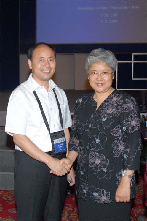 盧新才副會(huì)長(zhǎng)與翻譯專(zhuān)家唐聞生女士合影。