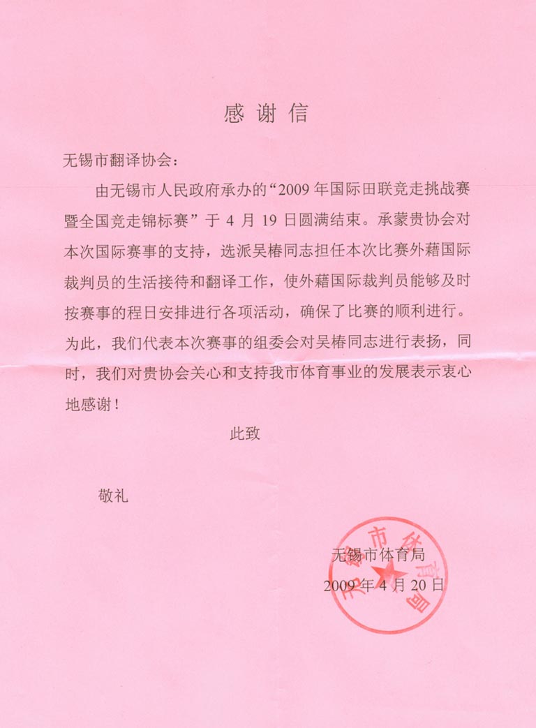 應(yīng)無錫市體育局的要求,我會(huì)擔(dān)負(fù)了賽事文件編譯,高級(jí)隨行口譯,賽事涉外接待和各國外運(yùn)動(dòng)隊(duì)的陪同翻譯任務(wù).考慮到賽事的實(shí)際要求,無錫市翻譯協(xié)會(huì)由無錫市商業(yè)職業(yè)技術(shù)學(xué)院組織包括英,韓文在內(nèi)的學(xué)生作為志愿者,并進(jìn)行系列培訓(xùn).他們優(yōu)秀的表現(xiàn)獲得了賽事組織方的一致好評(píng).