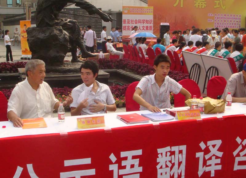 2008年9月20日,第三屆科普學(xué)習(xí)周在無錫市崇安寺步行街廣場隆重召開,我會(huì)四名代表參加了開幕式。與往界學(xué)習(xí)周相比,此次學(xué)習(xí)周開幕式上增設(shè)了新華書店的書展和兒童作家現(xiàn)場簽名活動(dòng),現(xiàn)場氣氛甚是熱鬧。我會(huì)代表在開幕式上就公共標(biāo)識(shí)語翻譯方面的問題接受了現(xiàn)場咨詢和無錫廣播電臺(tái)的現(xiàn)場采訪。