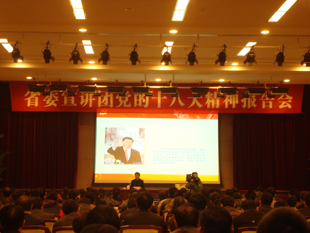 12月5日上午9:00,“省委宣講團(tuán)黨的十八大精神宣講報(bào)告會(huì)”在無錫市市民中心舉行。省委宣講團(tuán)成員、省委宣傳部常務(wù)副部長章劍華為主講人。市委常委、市人大、市政府、市政協(xié)、市紀(jì)委全體領(lǐng)導(dǎo)同志;市部委辦局、人民團(tuán)體、直屬單位黨政主要負(fù)責(zé)同志;濱湖、崇安、南長、北塘、新區(qū)黨政主要負(fù)責(zé)同志,宣傳部長;部分市級(jí)機(jī)關(guān)干部;社科理論工作代表出席了報(bào)告會(huì)。無錫市翻譯協(xié)會(huì)2名代表參加了會(huì)議。會(huì)議由無錫市宣傳部部長王國中主持。