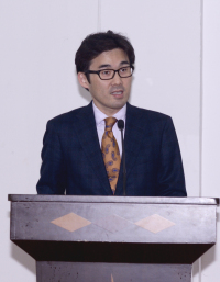 日本國(guó)駐上??傤I(lǐng)事館領(lǐng)事巖元秀壯先生致開幕詞。