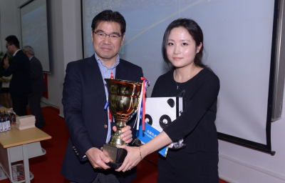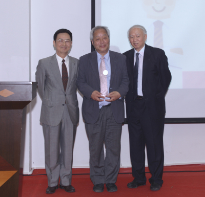 頒獎(jiǎng)之前,翻譯協(xié)會(huì)副會(huì)長(zhǎng)、日本語專家朱政孝先生就日語演講比賽10年來所取得的成績(jī)進(jìn)行了總結(jié),并宣布組委會(huì)對(duì)為此做出杰出貢獻(xiàn)的岡正典先生進(jìn)行表彰。翻譯協(xié)會(huì)曹幼鉉會(huì)長(zhǎng)代表組委會(huì)授予岡正典先生獎(jiǎng)杯。