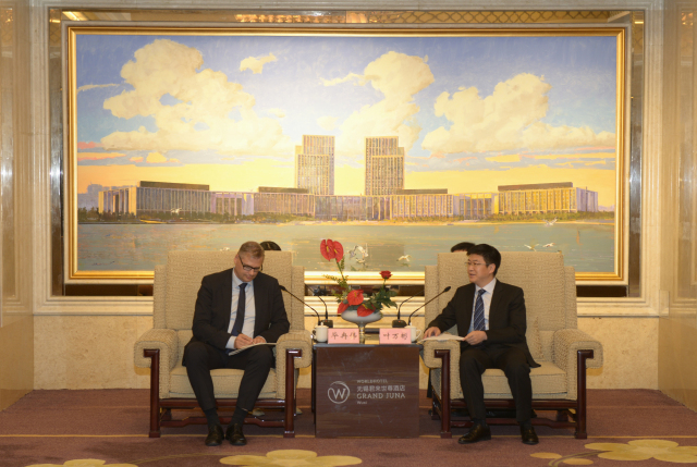 葉副市長在接見外賓時介紹了無錫的社會發(fā)展?fàn)顩r以及我市與丹麥王國的友好往來情況。Rasmus Bjorno主任簡要介紹了丹麥經(jīng)濟技術(shù)優(yōu)勢以及與我市的合作情況,并對我市的熱情接待與周到安排表示感謝。
