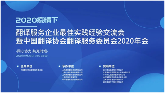 由中國譯協(xié)翻譯服務(wù)委員會主辦的 “2020疫情下翻譯服務(wù)企業(yè)最佳實(shí)踐經(jīng)驗(yàn)交流會暨中國翻譯協(xié)會翻譯服務(wù)委員會2020年會”于9月26日以線上形式召開,會議主題為“同心協(xié)力,共克時(shí)艱”。來自委員會成員單位、語言服務(wù)行業(yè)企業(yè)、高等院校、科研機(jī)構(gòu)及行業(yè)組織的代表近200人參加會議。