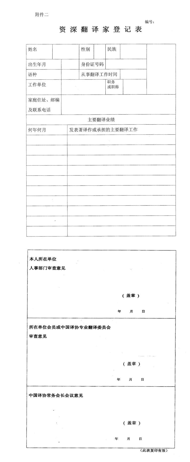 附件二:“資深翻譯家登記表”(復(fù)印有效)